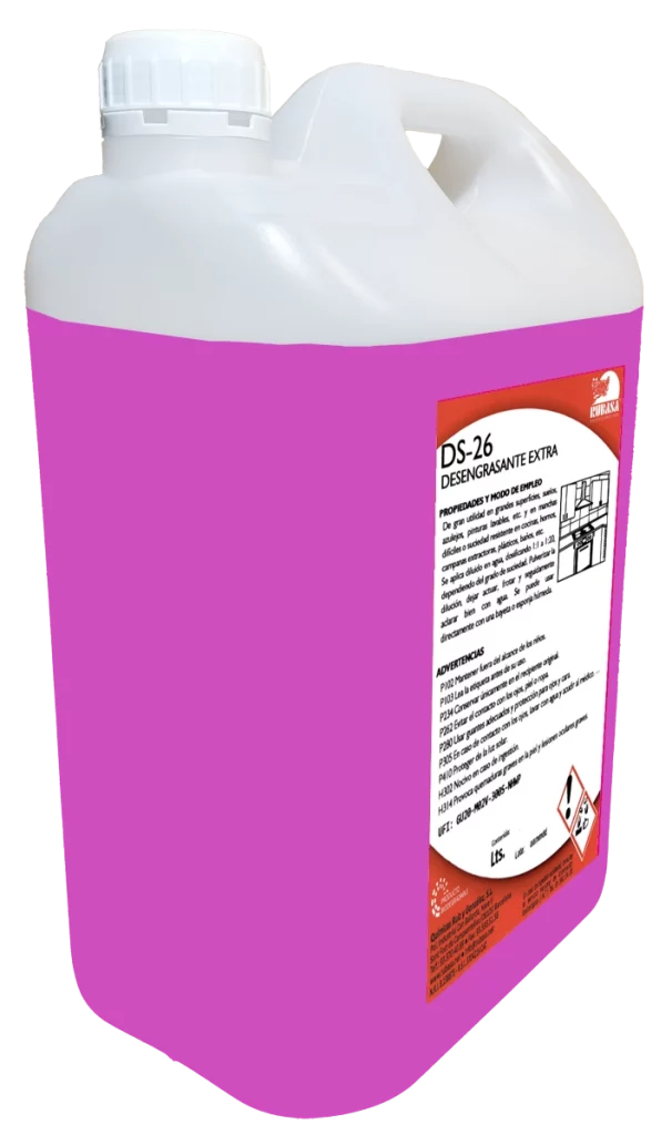 Desengrasante extra fuerte de gran utilidad en grandes superficies, suelos, azulejos, etc. y en manchas difíciles o suciedad resistente en cocinas, hornos, campanas extractoras, plásticos, baños, etc. Ideal para industria cárnica, quesera, talleres mecánicos, etc.